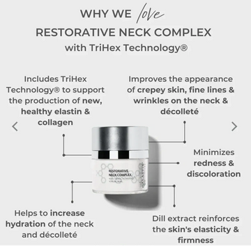 Alastin Restorative Neck Complex is a specialized treatment designed to firm, tighten, and smooth the delicate skin on the neck and décolleté. Powered by TriHex Technology®, it helps reduce the appearance of crepey skin, fine lines, and sun damage while supporting collagen and elastin production. The result is a more lifted, youthful, and refined neck profile.